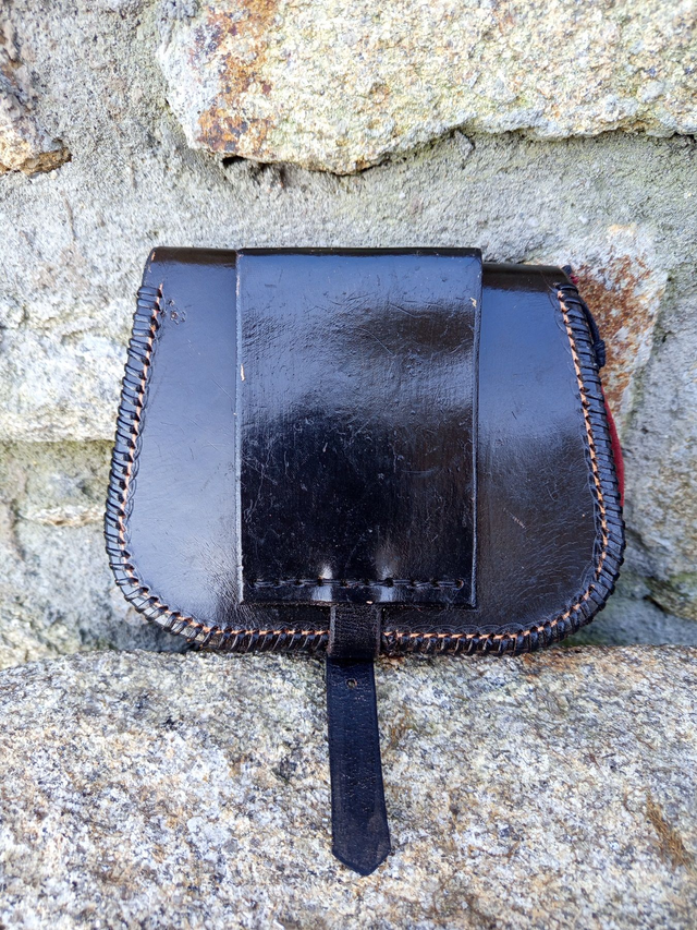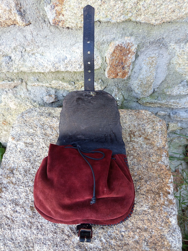 Aumonière celtique en cuir noir et bordeaux